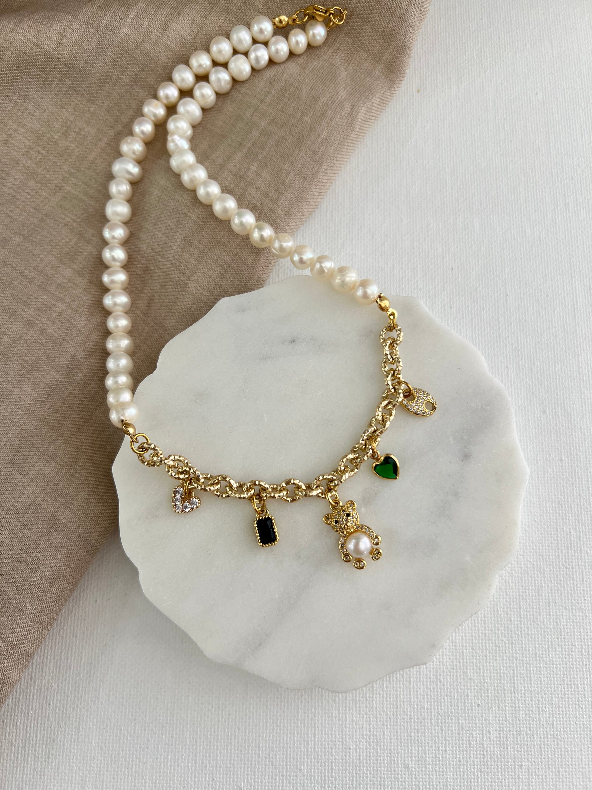 Collar con perlas genuinas y dijes dorados